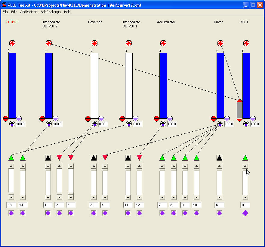 This is Curve 6 operated in a limited range. In this case, we are using the clipper window of the "INPUT" position to drive the "Driver" and the "Intermediate OUTPUT 2" importance. The "Intermediate OUTPUT 1" and "Intermediate OUTPUT 2" are combined in the "OUTPUT" position.
