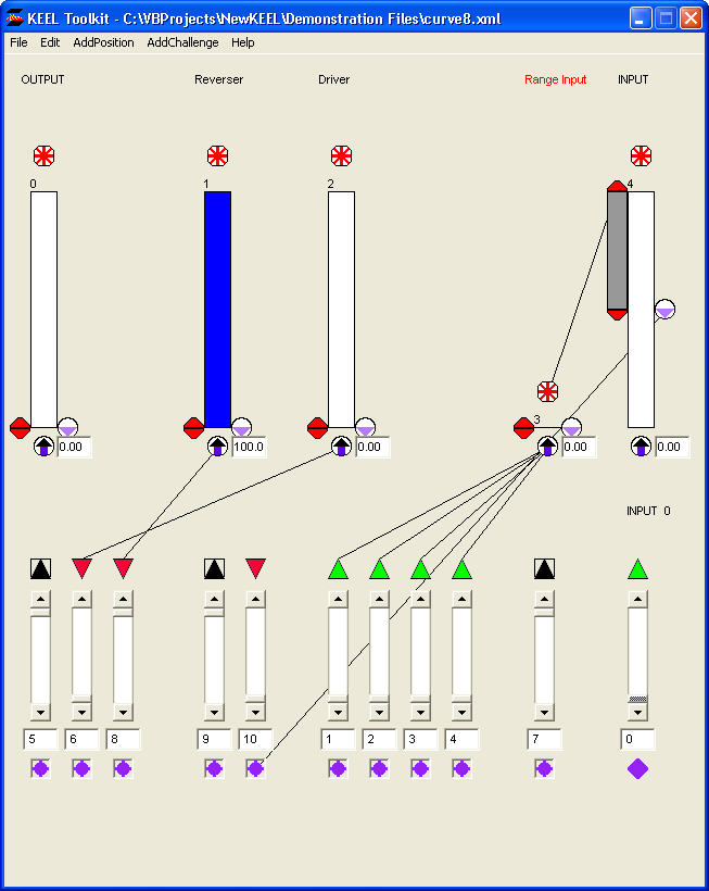 This is accomplsihed by using the clipper of the "INPUT" to define the range across where the curve is executed. In this case, the lower clipper is set at 50% and the upper clipper is set at 100%. The clipper is used to drive the importance of the "Range Input". The "Range Input" is then used to drive the "Driver" by multiplying its impact 4 times. Refer to the Curve 4 discussion.